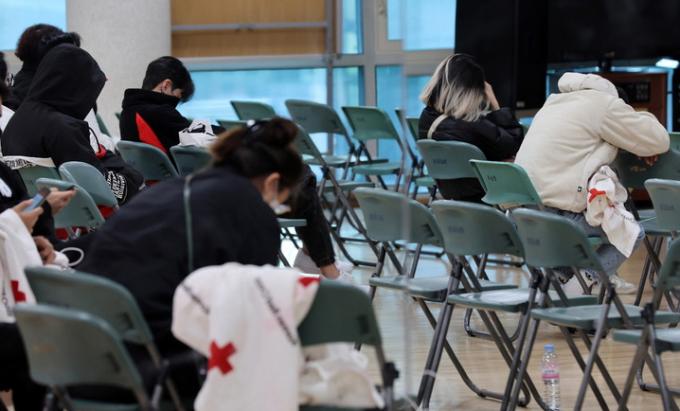 ▲ 지난달 30일 한남동 주민센터에 마련된 이태원 참사 실종자 접수처 대기실에서 가족이나 지인과 연락이 두절된 시민들이 대기하고 있다. [뉴시스]