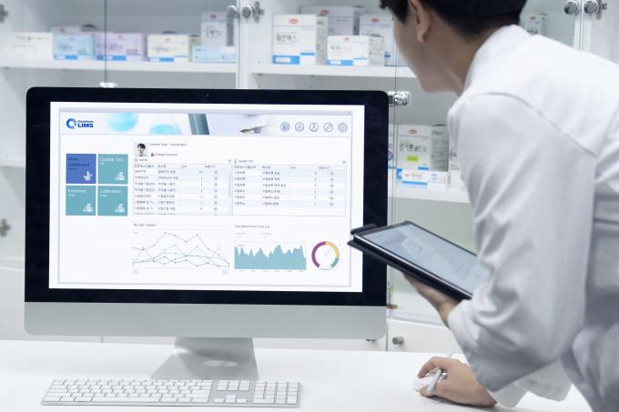 ▲ 제약회사 연구원이 퀀텀 LIMS를 사용하고 있다. [한미약품 제공]
