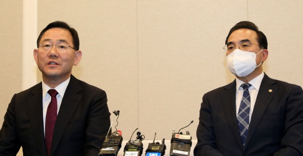 국민의힘 주호영, 더불어민주당 박홍근 원내대표는 이날 오후 국회에서 여야 합의로 마련된 국정조사 계획서를 발표했다.