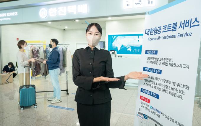 제2여객터미널서 출발하는 대한항공 국제선 승객 이용가능 대한항공이 다음달부터 내년 2월 말까지 인천국제공항 제2여객터미널을 출발하는 승객의 겨울 외투를 무료로 보관해주는 '코트룸 서비스'를 시행한다고 24일 밝혔다.