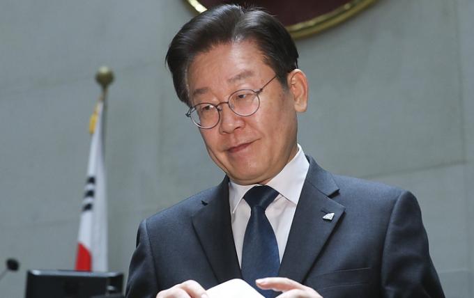 ▲더불어민주당 이재명 대표가 24일 국회에서 열린 의원총회에서 모두발언을 마친 뒤 자리로 들어가고 있다. [뉴시스]