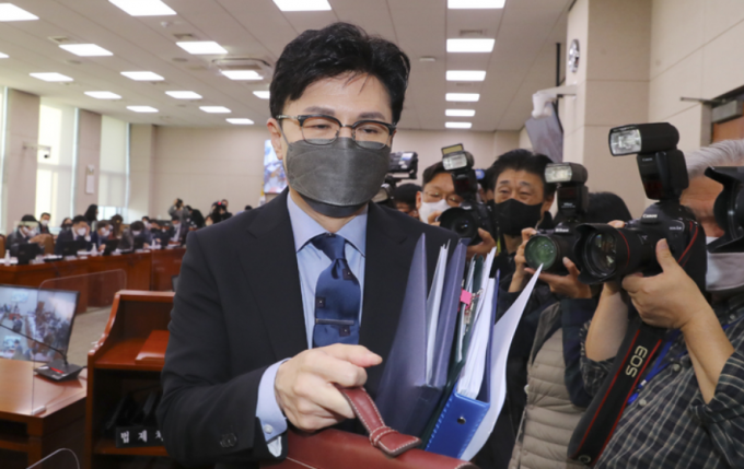 ▲한동훈 법무부 장관이 지난 23일 국회 법사위 전체회의가 끝나자 회의장을 빠져나오고 있다. [뉴시스]