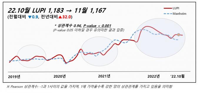 ▲ 올해 11월 루피지수는 전월대비 16포인트 하락한 1167을 기록했다. [롯데렌탈 제공]