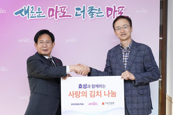효성 관계자는 "매년 김장 김치 외에도 마포구 주민들을 대상으로 사랑의 생필품 나눔, 사랑의 쌀 나눔 등 사회공헌 활동을 하고 있다"며 "앞으로도 취약계층을 위한 여러 활동들을 이어갈 것"이라고 말했다.