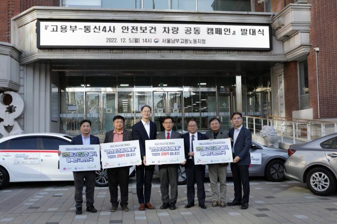이번 캠페인은 통신 4사가 공동으로 대국민 안전보건 의식 향상을 위해 업무용 차량 총 3500대에 '안전하고 건강한 일터, 행복한 대한민국'과 '안전을 위한 우리를 WE한, 안전보건관리체계 정착'이라는 슬로건을 부착해 운행하는 방식으로 진행한다.