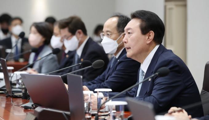 ▲윤석열 대통령이 지난달 29일 서울 용산 대통령실 청사에서 국무회의를 주재하고 있다. 윤 대통령은 이날 국무회의에서 집단운송 거부중인 화물연대측에 첫 업무개시명령을 발동했다. [뉴시스]