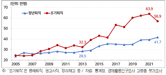조기퇴직자는 '22년 56.9만 명으로 76.2% 증가