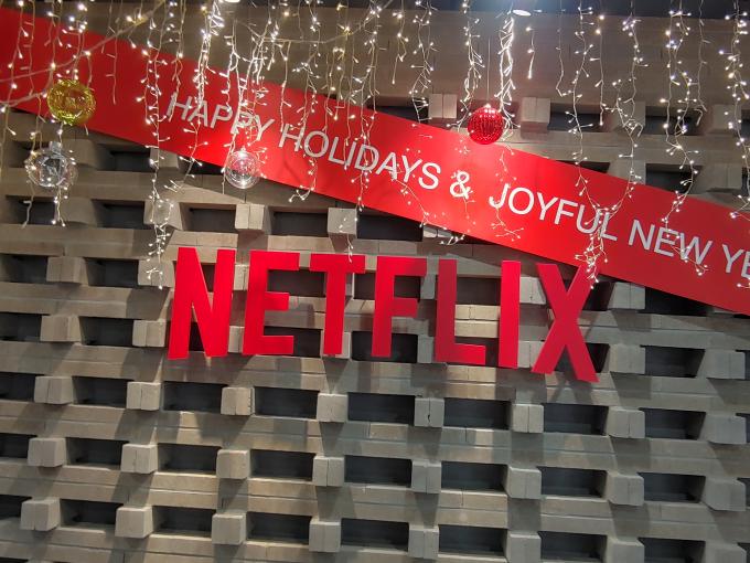 ▲ 넷플릭스 서울사무소 입구. 벽면에 넷플릭스 로고와 크리스마스 장식이 부착돼 있다. [김윤경 기자]