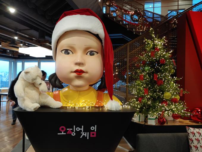 ▲ 넷플릭스 서울사무소에 설치된 '오징어 게임' 조형물. [김윤경 기자]