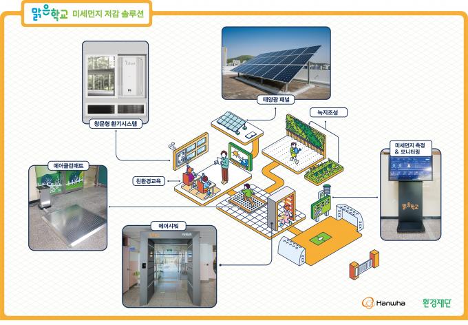 '맑은학교 만들기'는 초등학교 아이들이 학교에서 마음껏 숨쉬며 생활할 수 있도록 맞춤형 녹지, 공기정화장치 등을 활용해 교내 공기질을 개선하는 한화의 대표 사회공헌활동이다.