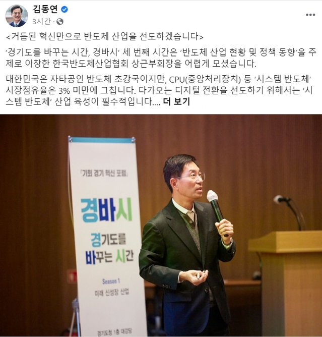 그러면서 "경기도는 대한민국 반도체 부가가치의 83%를 생산하고 있다"며 "세계 1~4위 반도체 장비 기업도 품고 있다. 이 막강한 산업 기반을 토대로 혁신을 거듭하겠다"며 "이를 통해 세계 반도체 산업을 선도하겠다"고 밝혔다.
