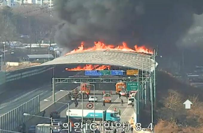소방당국 "4시12분께 완진…사고 처리로 교통 통제" 29일 오후 1시49분 경기 과천시 제2경인고속도로 북의왕IC 인근 방음터널 구간에서 화재가 발생해 현재까지 5명이 숨지고, 37명이 다쳤다.