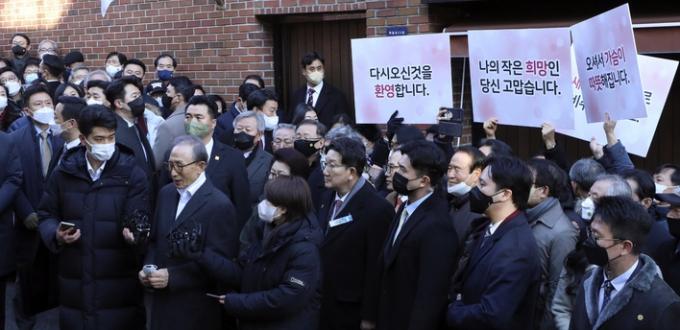 친이계 좌장 국민의힘 이재오 상임고문과 권성동·윤한홍·조해진·류성걸·박정하 의원 등은 이날 자택 앞에서 이 전 대통령을 맞이했다. MB정부에서 주요 공직을 맡았던 인사들은 대거 이 전 대통령 자택을 찾았다. 김황식 전 국무총리, 대통령 비서실장을 지낸 임태희 경기도교육감, 류우익 전 대통령실 실장, 이상휘 전 홍보기획비서관, 맹형규 전 행정안전부 장관 등이 모습을 보였다. 권성동 의원 등은 자택에 들어가 이 전 대통령을 예방했다.