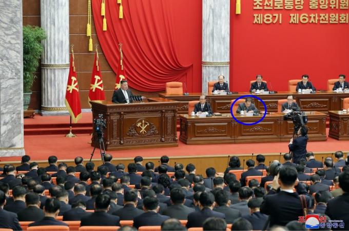 관영 매체에 공개된 전원회의 주석단에는 당 정치국 상무위원 6명과 위원 9명의 자리가 마련됐다. 전열에는 정중앙의 김정은 좌석을 포함해 7석이 배치됐고, 후열에는 군부 수뇌부 3인을 포함해 8석이 배치됐다.