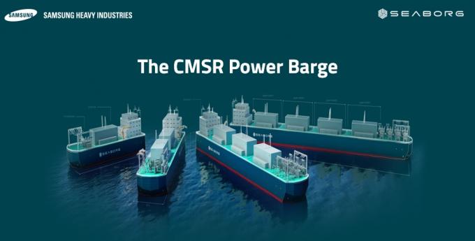 삼성중공업이 개발한 소형 용융염원자로 파워바지는 부유체 내에 스팀 터빈 발전기와 송배전 설비를 갖추고 있어 '바다 위 원자력 발전소'로 평가된다. 전력생산 수요 규모에 맞춰 100MW급 CMSR을 2기에서 최대 8기까지 탑재할 수 있다.
