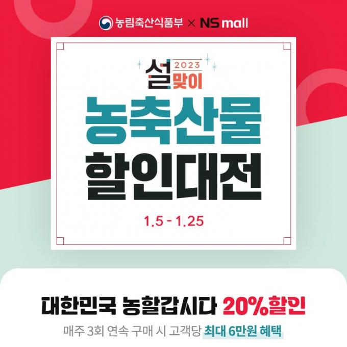 농축산물 20% 할인 쿠폰 제공 NS홈쇼핑이 오는 25일까지 '2023 설맞이 농축산물 할인대전'을 진행한다고 5일 밝혔다.