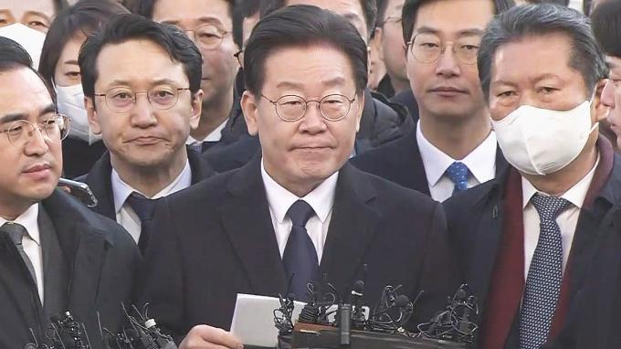 이 대표는 이날 오전 조사에 앞서 검찰 포토라인에서 "오늘 이 자리는 역사에 기록될 헌정사상 유례없는 초유의 현장"이라며 "소환조사는 정치검찰이 파놓은 함정이지만 잘못한 것도, 피할 이유도 없다"고 밝혔다.