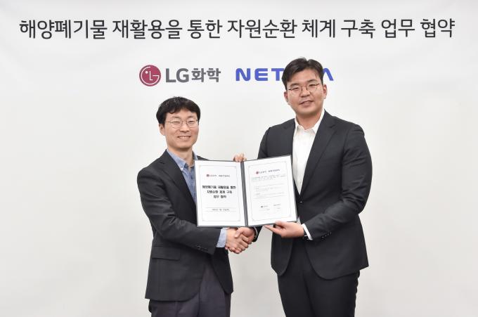 LG화학은 12일 여의도 LG트윈타워에서 자원 순환 기업 넷스파(NETSPA)와 해양폐기물 재활용을 통한 자원순환 체계 구축 업무 협약(MOU)을 체결했다고 밝혔다.