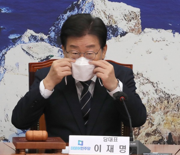 ▲ 더불어민주당 이재명 대표가 13일 국회에서 열린 최고위원회의에서 발언 후 마스크를 다시 쓰고 있다. [뉴시스]