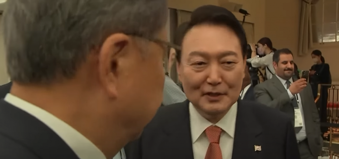 ▲ 윤석열 대통령이 지난해 9월 21일(현지시간) 미국 뉴욕에서 조 바이든 미 대통령 주제로 열린 글로벌펀드 제7차 재정공약 회의에 참가한 뒤 박진 외교부 장관에게 논란의 '비속어 발언'을 할 때의 모습. [유튜브 영상 캡처]