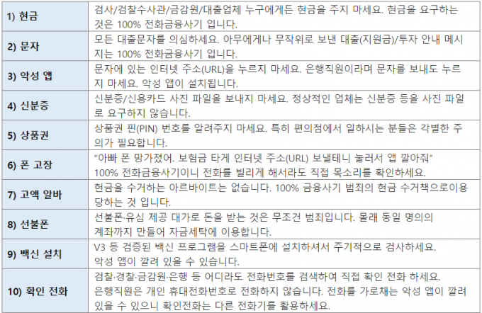 ▲경찰청이 제공한 '전화금융사기 예방 10계명' [SK텔레콤 발표 캡처]