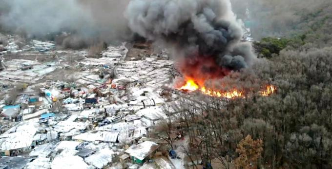 "가용 인력·장비 총동원해 화재 진압 만전 기하라" 설 연휴를 하루 앞둔 20일 오전 6시28분쯤 서울 강남구 개포동 구룡마을 일대에 큰 불이 나 소방당국이 진화 중이다.
