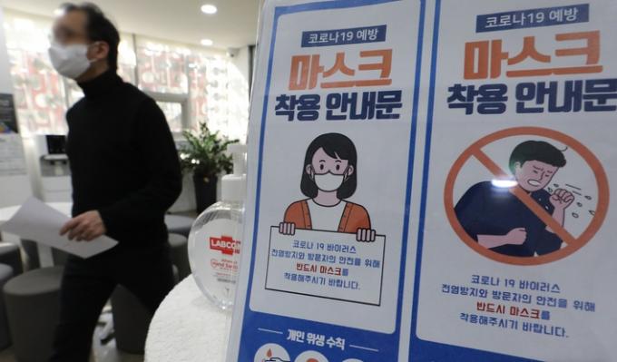 ▲ 지난 19일 서울 시내 한 문화시설에 마스크 착용 안내문이 붙어있다. 정부는 20일 '실내 마스크 착용 의무'를 오는 30일부터 '권고'로 변경하기로 결정했다. [뉴시스]
