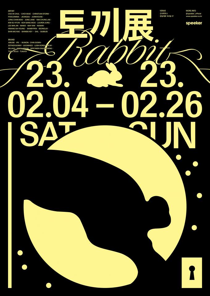 토끼展은 '검은 토끼의 해'인 2023년 계묘년을 맞아 토끼를 주제로 새로운 도약을 응원하는 희망의 메시지가 담긴 아트 콘텐츠를 선보이는 전시다. 스피커가 직접 선보이는 첫 번째 전시다.