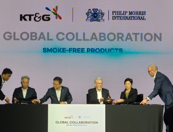 KT&G와 PMI는 30일 서울 여의도 콘래드 호텔에서 'KT&G-PMI 글로벌 컬래버레이션' 행사를 열고 전자담배 '릴'의 해외 판매를 위한 제품 공급 계약을 체결했다.