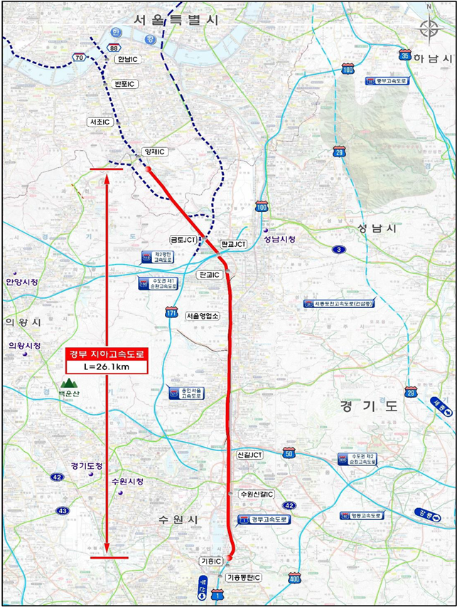 국비 3조8000억 원을 들여 건설될 이 구간의 지하고속도로는 예비타당성조사와 타당성 평가, 설계 등의 절차를 거쳐 이르면 2027년 하반기 착공될 예정이다.