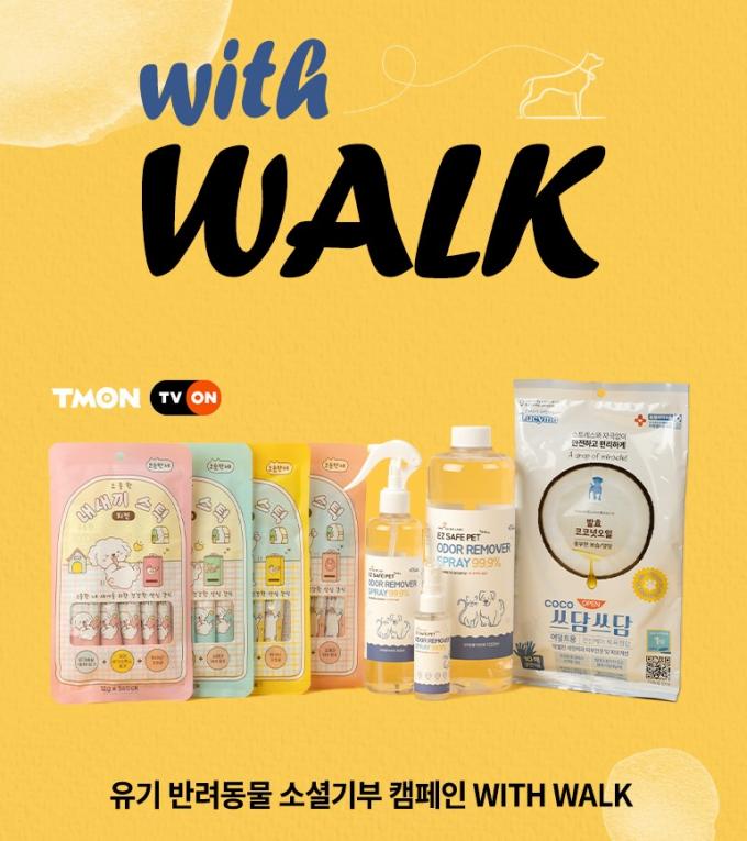 이날 오후 8시 티몬 라이브커머스 '티비온'에서 열리는 라이브 방송을 시청하고, 방송 중 '산책 패키지'를 구매하면 기부에 동참할 수 있다. 방송에서는 반려동물 교육 전문가인 이웅용 소장이 알려주는 산책 방법과 산책 후 관리법에 대한 교육 영상을 제공한다.
