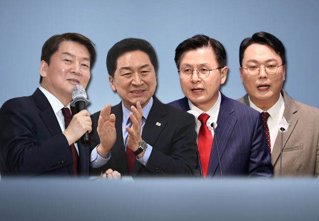 ▲ 국민의힘 안철수(왼쪽부터)·김기현 의원, 황교안 전 미래통합당 대표, 천하람 변호사 [UPI뉴스 자료사진]