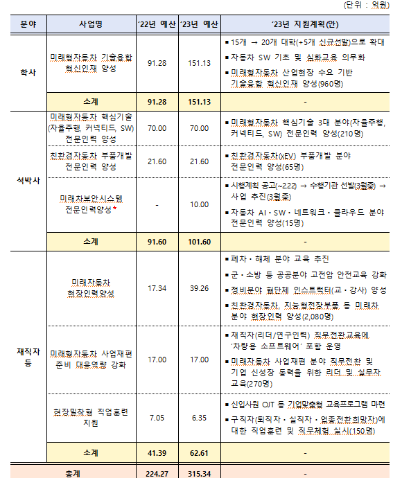 ▲ 2023년 미래자동차 인력양성사업 추진계획(안) [산업통상자원부 발표 캡처]