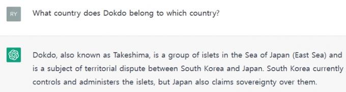 챗GPT의 역할은 그만큼 중차대해질 터인데, 아직은 미숙한 모습이다. 당장 "독도는 어느 나라 땅입니까"라고 물으면 질문 언어에 따라 상반된 답을 제시한다. 한글로 물으면 한국 땅이라고, 일본어로 물으면 일본 땅이라고 답했다.