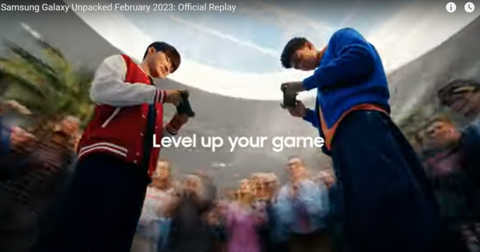 2023 갤럭시 언팩 영상에는 세계적 프로게이머 '페이커'가 등장하며 '당신의 게임을 레벨 업하라(Level up your game)'는 메시지까지 전한다.