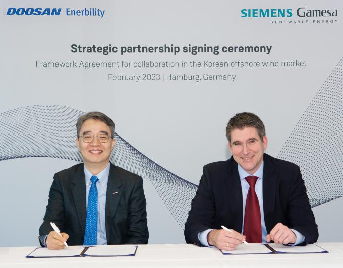 국내 해상풍력시장 전략적 협력 위한 기본 합의서 체결 두산에너빌리티가 지멘스가메사(Siemens Gamesa Renewable Energy, SGRE)와 손잡고 해상풍력 사업을 강화한다.