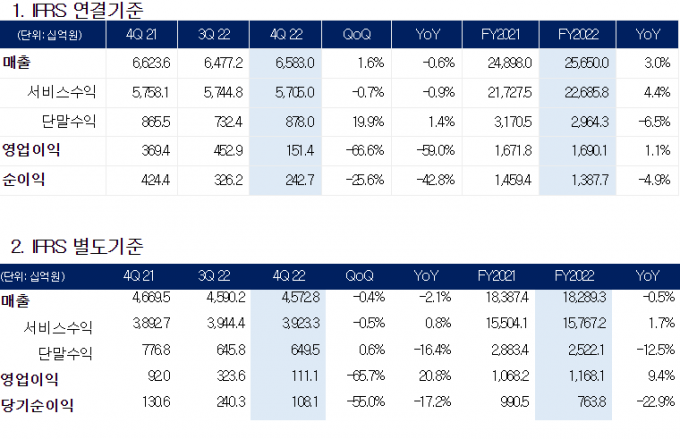 코로나19 확산세 완화로 해외 여행객이 늘며 로밍 매출도 회복세를 보였다. 초고속인터넷은 기가인터넷 판매 비중이 증가하며 매출이 전년 대비 3.3% 늘었다.