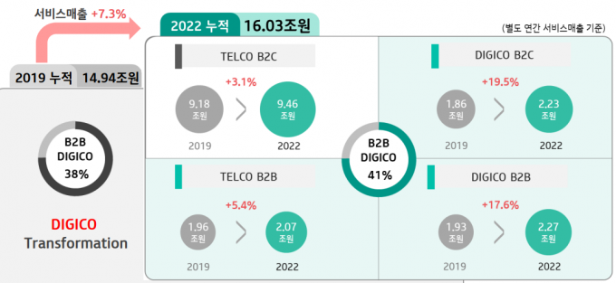 디지털 플랫폼 기업(DIGICO, 디지코)으로 도약과 기업 대상 사업(B2B)의 성공에 힘입은 것으로 풀이된다.