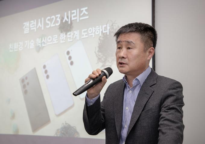 삼성전자 MX사업부 기구개발팀장인 박성선 부사장은 13일 서울 중구 태평로빌딩에서 열린 기자간담회에서 "갤럭시 S23은 지구와 환경을 생각하는 친환경 기술과 혁신이 집약된 제품"이라고 밝혔다.