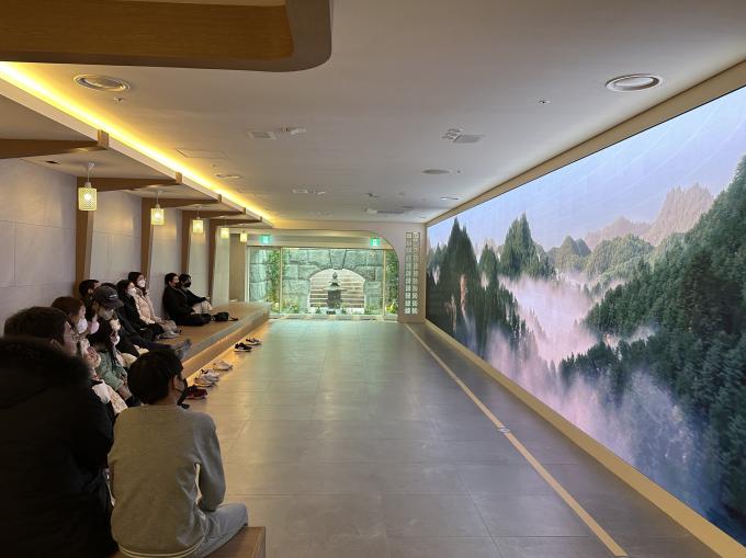 14일 국립부여박물관에 따르면 디지털 쉼터는 전통적인 튓마루와 평상을 구현한 공간으로 길이 12m, 높이 2.4m의 대형 초고화질 LED화면의 영상을 보며 휴식을 취하는 장소다.