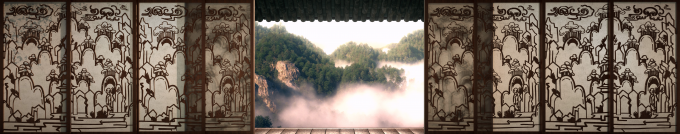 백제 문양전은1937년 충남 부여군 외리 유적에서 발견된 것으로 벽돌 윗면에는 용, 봉황, 연꽃, 도깨비 등 8종류의 그림이 각각 표현돼 있다. '백제 산수의 흥취'영상에서는8종의 문양전 중 산수문전(山水文塼)에 표현된 아름다운 백제의 자연이 미디어아트로 실감나게 펼쳐진다.