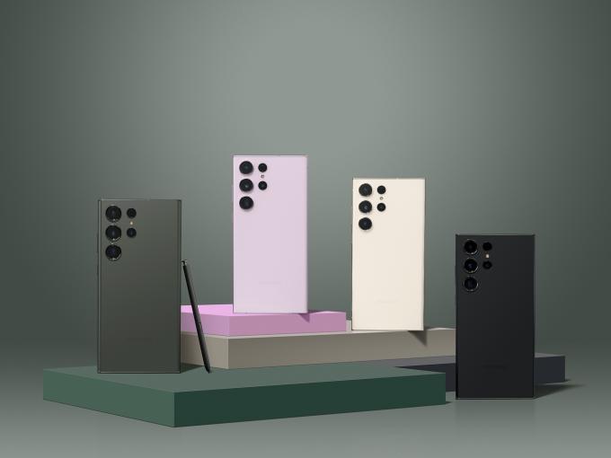 ▲ 갤럭시 S23 울트라 제품들. 좌측부터 그린, 라벤더, 크림, 팬텀블랙 색상. [삼성전자 제공]