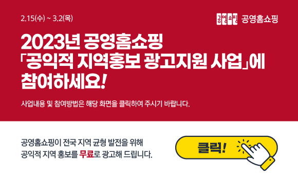 공영홈쇼핑은 오는 3월 2일까지 전국 시·도 지자체 및 정부기관을 대상으로 무료 광고 지원사업 참여 기관을 모집한다. 선발된 50편의 광고는 오는 4월부터 공영홈쇼핑 TV 채널을 통해 방영된다. 지역특화관광, 지역전통시장, 지역 박람회 등 공익 홍보라고 판단되는 내용을 대상으로 선정할 예정이다.