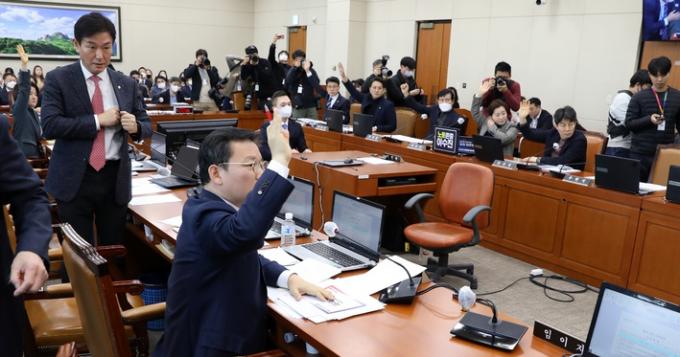국민의힘은 민주당 소속 전해철 위원장의 일방적 진행에 반발해 회의장에서 퇴장했다. 여당은 항의만 되풀이하며 야당을 저지하지 못해 무기력한 모습이었다.