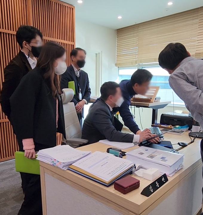 ▲ 22일 검찰 수사관들이 김동연 지사실의 PC를 압수수색하는 모습. [김동연 지사 페이스북 캡처]
