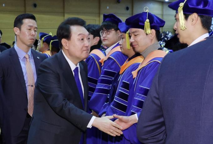 윤 대통령은 졸업생들에게 "여러분은 우리나라의 미래다. 여러분의 꿈과 도전, 그리고 용기와 패기를 강력히 지지하고 응원한다"고 격려했다.