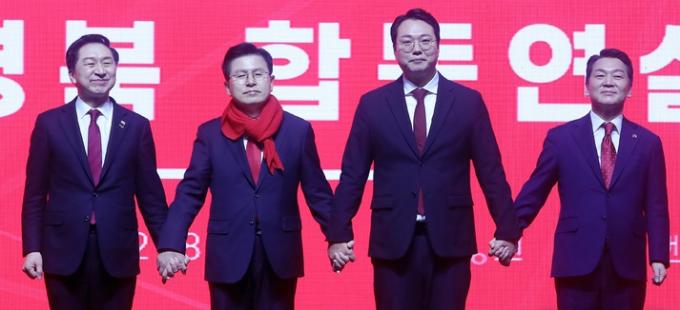 安 "공갈연대"…千 "우주가 돕는데도 과반 안되나" 국민의힘 3·8 전당대회가 일주일 앞으로 다가왔다. 김기현 당대표 후보가 '1강'으로 독주하는 판세가 굳어지고 있다. 추격자 3명이 김 후보를 집중 공격하고 있으나 격차는 되레 벌어지는 흐름이다. 김 후보가 1차 투표에서 끝낼 수 있을까.