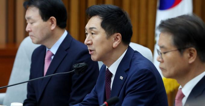 김기현 대표는 모두발언에서 "이제 강성 거대 귀족 노조는 조합원과 국민의 신뢰를 얻을 수 있도록 사회적 책무를 다해야만 할 시기가 됐다"며 "당정은 원팀이 돼서 이 문제를 하나하나 차근차근 해결해나가도록 하겠다"고 다짐했다.