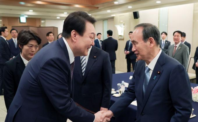 스가 전 총리도 "양국 정부가 한일관계 개선의 첫걸음을 뗀 것은 중요한 의미가 있는 만큼 일한의원연맹 차원에서도 한일 간 의원 교류 활성화와 건설적인 정책 제언을 통해 한일관계의 발전을 뒷받침하기 위한 노력을 펴겠다"고 보조를 맞췄다.