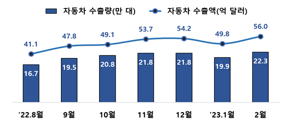 2월 자동차 수출액 56억 달러로 '역대 최고'